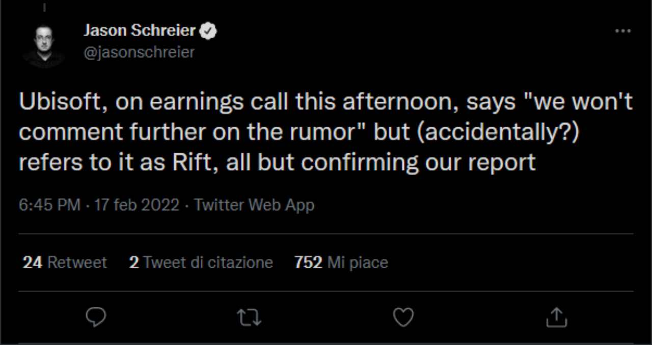 In occasione della conferenza stampa rivolta agli azionisti della compagnia, uno dei giornalisti presenti ha chiesto al CEO Yves Guillemot delucidazioni sul rumor in questione. La sua risposta è stata elusiva: “Per quanto riguarda la domanda inerente Assassin’s Creed Rift, posso solo dirti che non intendiamo commentare ulteriormente questo rumor. Quello che posso dire è che abbiamo una Roadmap molto forte per il franchise di Assassin’s Creed, con tanti nuovi contenuti di qualità in arrivo ogni anno. Per oggi comunque vogliamo concentrarci sulle grandi performance registrate da Assassin’s Creed Valhalla”.