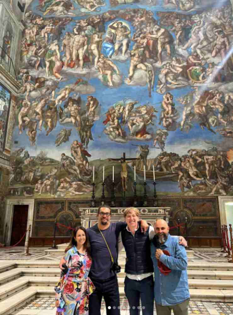 Jason Momoa ha scioccato tutti i suoi fan pubblicando su Instagram una foto all’interno della Cappella Sistina con lo sfondo del Giudizio Universale di Michelangelo.