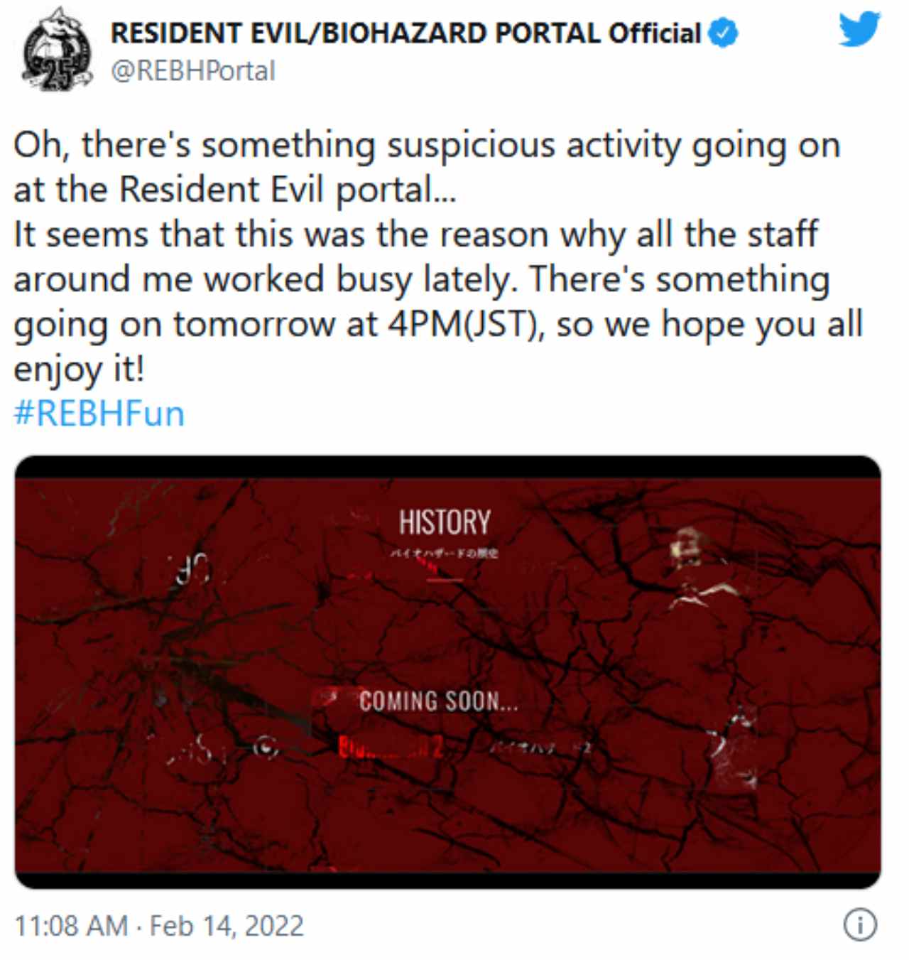 Ecco cosa recita il cinguettio di Capcom: “Oh, c’è una qualche attività sospetta in questo momento su Resident Evil Portal…Sembra sia questo il motivo per cui tutto lo staff intorno a me lavorava alacremente fino a notte fonda. C’è qualcosa che vi sveleremo domani alle 4 di pomeriggio, speriamo che vi piaccia”.
